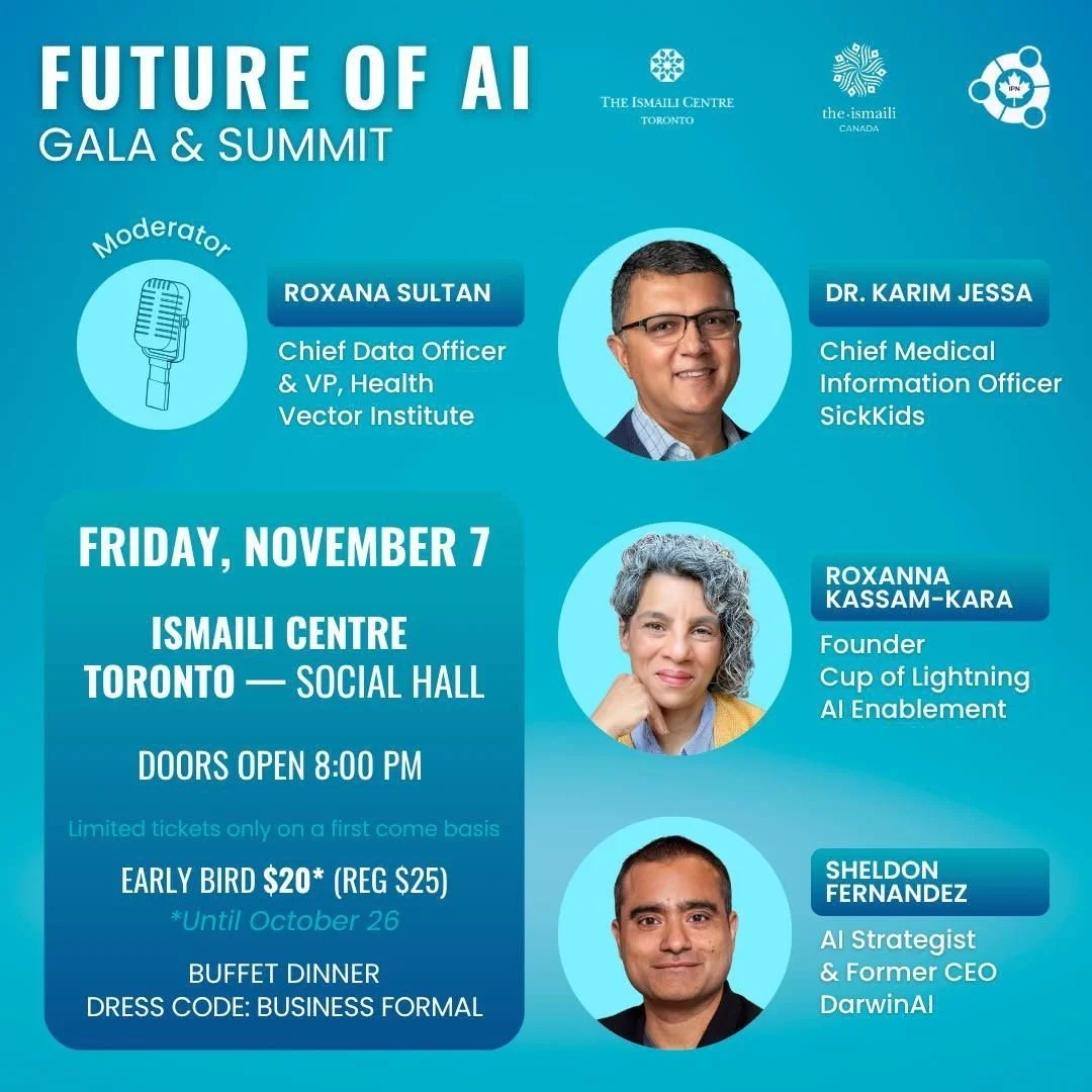 Join us for the Future of AI: Gala & Summit on Friday, November 7 at 8 p.m. at the Ismaili Centre Toronto's Social Hall.